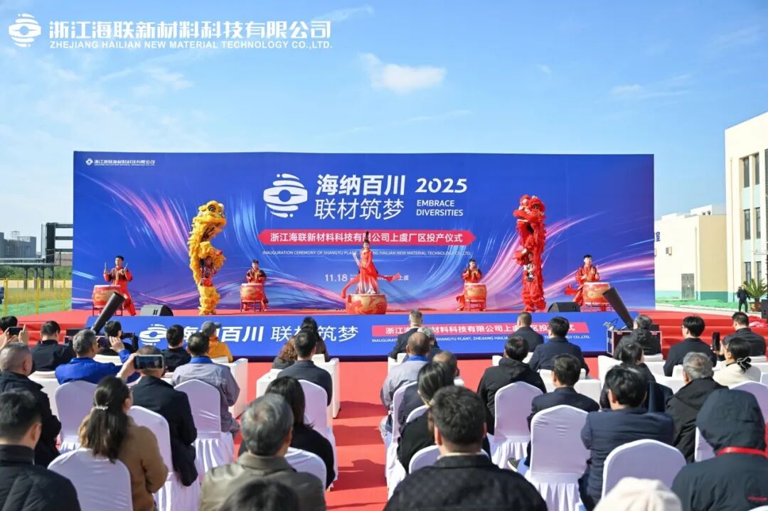 在这美好的季节,11月18日上午10时许,以“海纳百川,联材筑梦”为主题的投产庆典仪式,在杭州湾上虞经济技术开发区浙江海联新材料科技有限公司(以下简称海联)厂区内隆重举行。